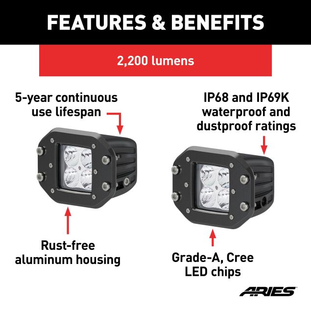 2" Square Flush-Mount LED Lights (2,200 Lumens)