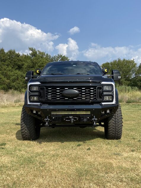 Heavy-duty, smooth 3/16" plate bumper with winch mount & light bar cutout. Modular center skid plate & light bracket options. Multiple grill guard bar options.