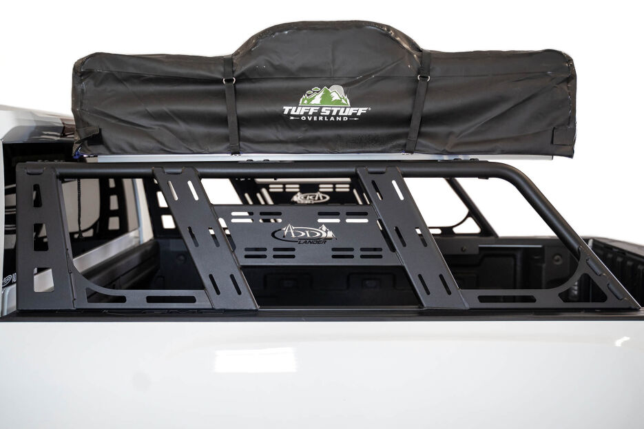 The Addictive Desert Designs ADD-Lander Overland Rack is available for all full-size pickup trucks (with some exceptions. The universal design uses a clamp mounting system, so there is no drilling into your bed rails required for installation. This will fit Ford F-Series trucks as well as the RAM, Chevy, and GMC 1500/2500/3500 series trucks.