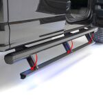 ActionTrac™ powered running boards are the ideal lifted Jeep or lifted truck power steps. They feature a unique step-within-a-step™ -- two steps in one. The power step automatically deploys when the door opens, providing an 8" drop and two-step access to any truck or Jeep.