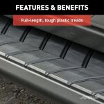 Stepping into the modern sport utility vehicle is safer and more stylish with AeroTread SUV running boards. They are constructed with a lightweight aluminum base and feature two front trim finish options. The treads offer a sleek look and non-skid traction for a safe step.
