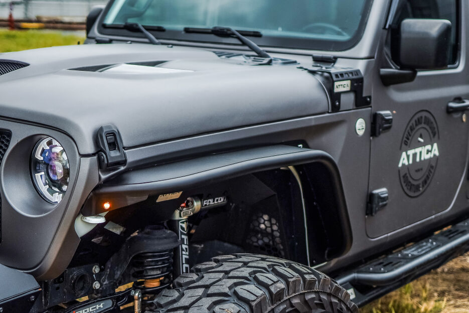 The Terra Series Front Fender Flares are the perfect addition for off-road enthusiasts. These flares are designed with characteristics that prioritize functionality, durability, and style. One of the most notable features of these flares is their high clearance design. This feature allows for larger tire sizes, which are essential for conquering rough terrain. The flares are also constructed from durable steel, which makes them sturdy enough to withstand the rigors of off-road driving. Installation of these flares is made easy with their bolt-on design, which eliminates the need for drilling or any other modifications. This means that you can install them quickly and easily, allowing you to spend more time on the trails. Whether you're climbing steep inclines, traversing rocky terrain, or crawling through mud, the Terra Series Front Fender Flares will keep your Jeep Wrangler JL protected and ready for adventure.