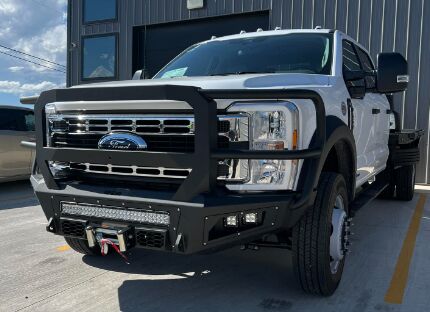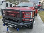- WINCH & LIGHT BAR FITMENT NOTES: This bumper is designed to mount a light bar **OR** winch, not both. If mounting both item inside the bumper, it will require using a smaller frame winch with a foot-down mount (such as Warn Zeon 12 winch). If using a larger frame winch with a foot-forward mount (such as Warn 16.5ti or Warn M-Series) you can NOT mount a light bar with it, due to the winch mounting bracket inside the bumper blocking the light bar cutout.