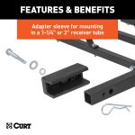 CURT basket cargo carriers feature a strong bolt-together design and are made with heavy-duty carbide steel and a tubular construction for increased strength. One of the advantages of the basket style is its 6" high sides. These provide extra security and peace of mind during travel. This particular basket cargo carrier features a 1-1/4" x 1-1/4" shank with a 2" x 2" adapter sleeve to be able to fit most receiver-type trailer hitches. It can accept up 500 lbs. of cargo and has a durable black powder coat finish to resist rust, scratches and UV damage. Whether you prefer the hitch-mounted carrier or the roof rack option, CURT has cargo management solutions to meet your needs.