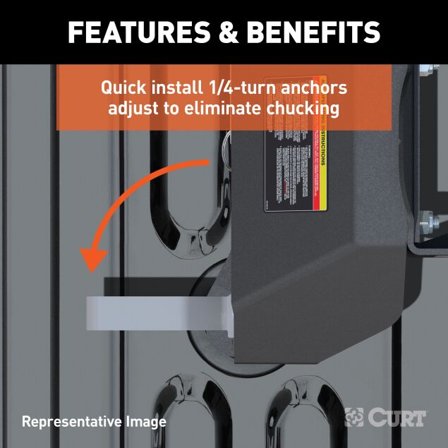 The CURT E16™ 5th wheel trailer hitch is an economical choice that offers a variety of features for smooth, safe 5th wheel towing. The E16™ has a gross trailer weight rating of 16,000 lbs. and can withstand a vertical load up to 4,000 lbs. It comes with a dual-pivoting head, 10 degrees of lateral movement and an anti-rattle skid plate to provide a smoother, quieter ride. The E16™ also comes with easy, single-handle operation and a durable carbide black powder coat for long-lasting protection against the elements. With four height adjustment settings, the E16™ is quick and simple to install, and it is backed by a limited lifetime warranty.