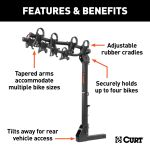 Each CURT premium hitch bike rack has tapered arms, allowing for different size bikes to be transported with easy, including kids bikes. They are also compatible with the towable bike rack hitch mount shank for towing a trailer behind the bike rack.