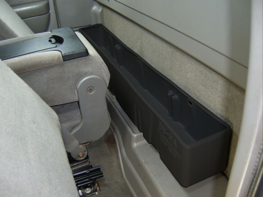 Whether you're a contractor, sports enthusiast, or anyone who values organized and secure storage, the DÜHA Behind-the-Seat Storage System is the ultimate under seat truck storage solution for seamless truck storage integration. This innovative truck storage system maximizes space, enhances organization, and keeps your guns, tools, and gear safe and secure. Proudly roto-molded and Made in the USA, the DÜHA Behind-the-Seat Storage System comes with a lifetime warranty, reflecting the manufacturer's confidence in its quality and durability.