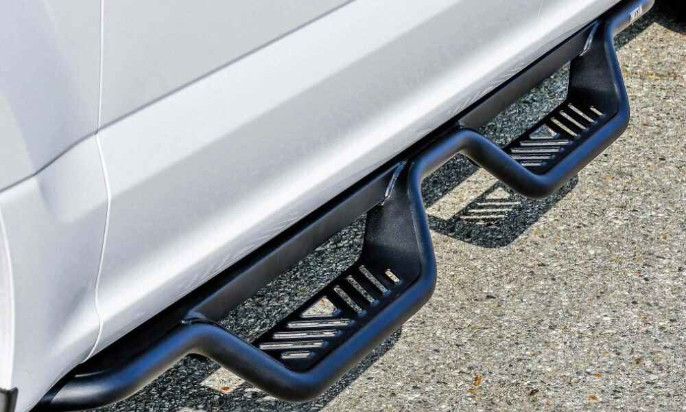 Steps, also known as nerf bars, offer a different design. These are typically round or oval and more compact. They provide a smaller stepping surface compared to running boards.