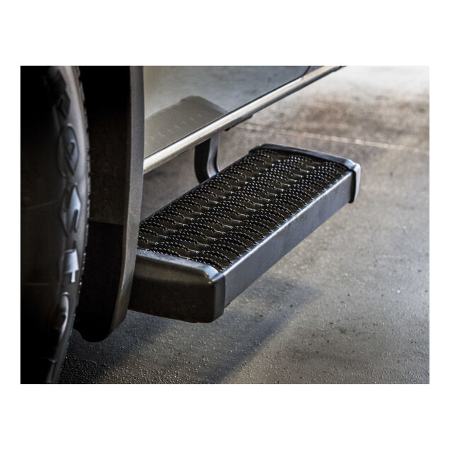 Grip Step™ running boards are designed to help make your work feel more like play. The secret to their success is their expanded metal treads built into the top surface of each running board. Instead of plastic or even rubber step pads, these matte black running boards have expanded metal treads along the stepping surface, providing a level of traction approved for fleet and commercial settings. The treads lock onto the bottom of your boots in wet or dry conditions, and the 7" width provides a generous, comfortable stepping surface. Climbing in and out of your vehicle couldn’t be safer.