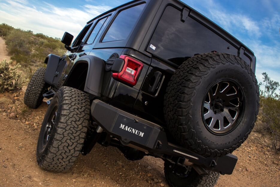 Magnum RT Rear Bumpers were designed to be tight to the body for added protection while giving higher clearance and allowing larger spare tires to be mounted in the factory location. Constructed from 1/8" steel with 1/4" support braces, they deliver exceptional strength for any terrain. An integrated LED brake light increases visibility, while fully welded 1" solid steel D-ring anchors and a durable 3-stage powder coat provide long-lasting strength and corrosion resistance.
