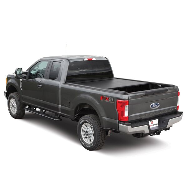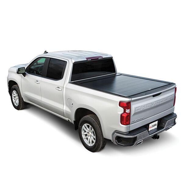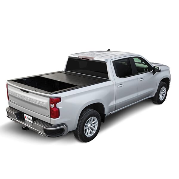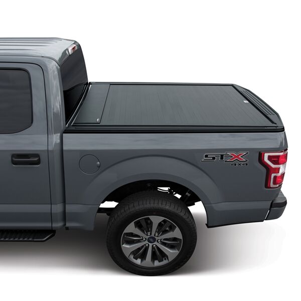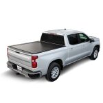 The Pace Edwards BedLocker® Matte Electric Retractable Tonneau Cover redefines convenience and style for truck owners. Featuring hands-free remote operation with two key fobs, it's designed for ease of use. The no-drill, clamp-in installation ensures a hassle-free setup, and the cover retracts seamlessly into a contoured canister at the front of the truck bed, providing a sleek, low-profile, and aerodynamic design that enhances fuel efficiency and aesthetics.