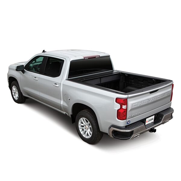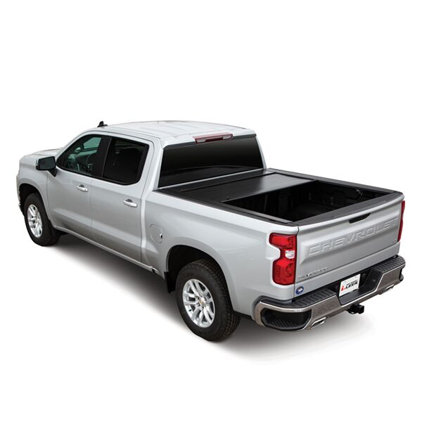- Exclusive, heavy-duty Continuous Tension Spring (CTS) allows the cover to open automatically when the latch is turned and retract into a contoured canister at the front of the truck bed.