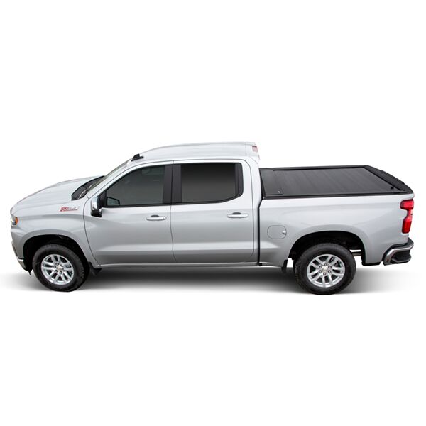 With its low profile design, flush truck rail fit, and innovative hardware, it enhances fuel efficiency and maintains a stylish OEM appearance. The cover's recessed rail interiors also act as rain gutters, directing water away. Plus, it offers full rear visibility when open or closed, and it's compatible with most hitch setups. Crafted in the USA and backed by the Ultimate Lifetime Warranty, this tonneau cover sets a new standard in truck bed protection.