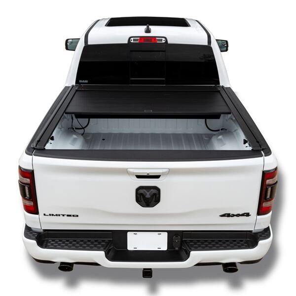 - Retracts into a contoured canister at the front of the truck bed.