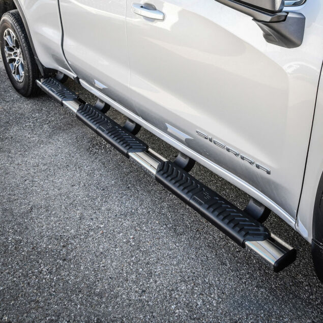 Get a boost, with Westin’s R5 M-Series Wheel-to-Wheel Nerf Step Bars. The extra wide 5” footprint step design provides easier and safer vehicle access for both drivers and passengers. Featuring three oversized skid resistant step pads, the R5 M-Series Wheel-to-Wheel allows easy access to the vehicle cab or truck bed cargo area.